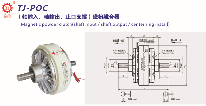 【臺灣天機】雙軸磁粉離合器,收料張力磁粉離合器(TJ-POC)即是雙伸出軸磁粉離合器DC24V,由于其結構結單,可靠性高,耐用性高,轉矩控制比較簡單,并可采用交流電動機來作為傳動電機,所以在張力控制系統當中也被廣泛應用。常見的卷繞機械恒張力控制都是卷取機構,對于開卷機械,在運行中一般只在開卷軸上加一個機械的制動力矩。但隨著自動化技術的提高,大部分生產機械的開卷機械都采用TJ-POC雙軸磁粉離合器,除此之外,還有印刷機械、包裝機械、電線電纜等工業機械收卷、張力控制系統。