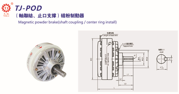 【臺灣天機】單出軸磁粉剎車器TJ-POD型即伸出軸磁粉制動器,磁粉傳遞轉矩,這是一款最為受歡迎專用于材料放卷、轉矩控制的傳動件,廣泛應用在印刷機、包裝機、分條機、分切機、涂布機、腹膜機、塑料機、橡膠機、紡織機、印染機、電線電纜設備等工業機械張力控制系統,用途有張力控制、連續滑動、模擬負載、緩沖啟動、剎車等。單出軸磁粉制動器采用進口軸承、磁粉,提高其使用壽命、工作性能。