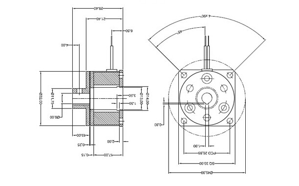 微型電磁剎車(chē)器參數(shù)與安裝尺寸圖如下: